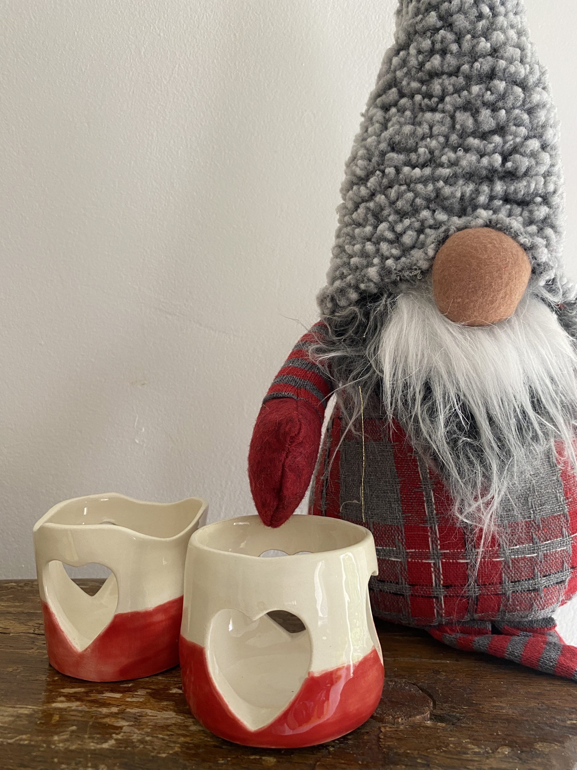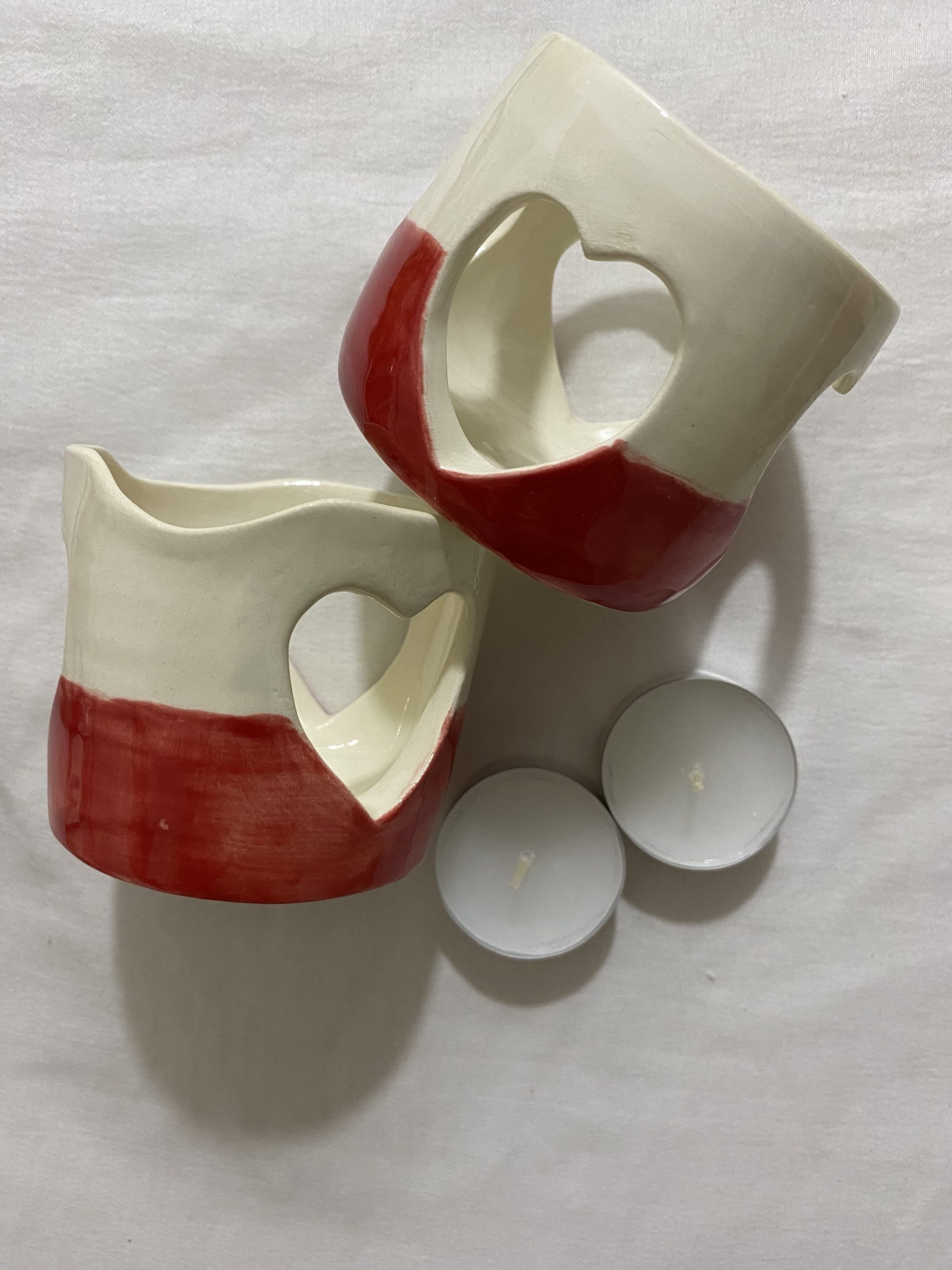 | Bougeoir Coeur | Faïence blanche et émail rouge |