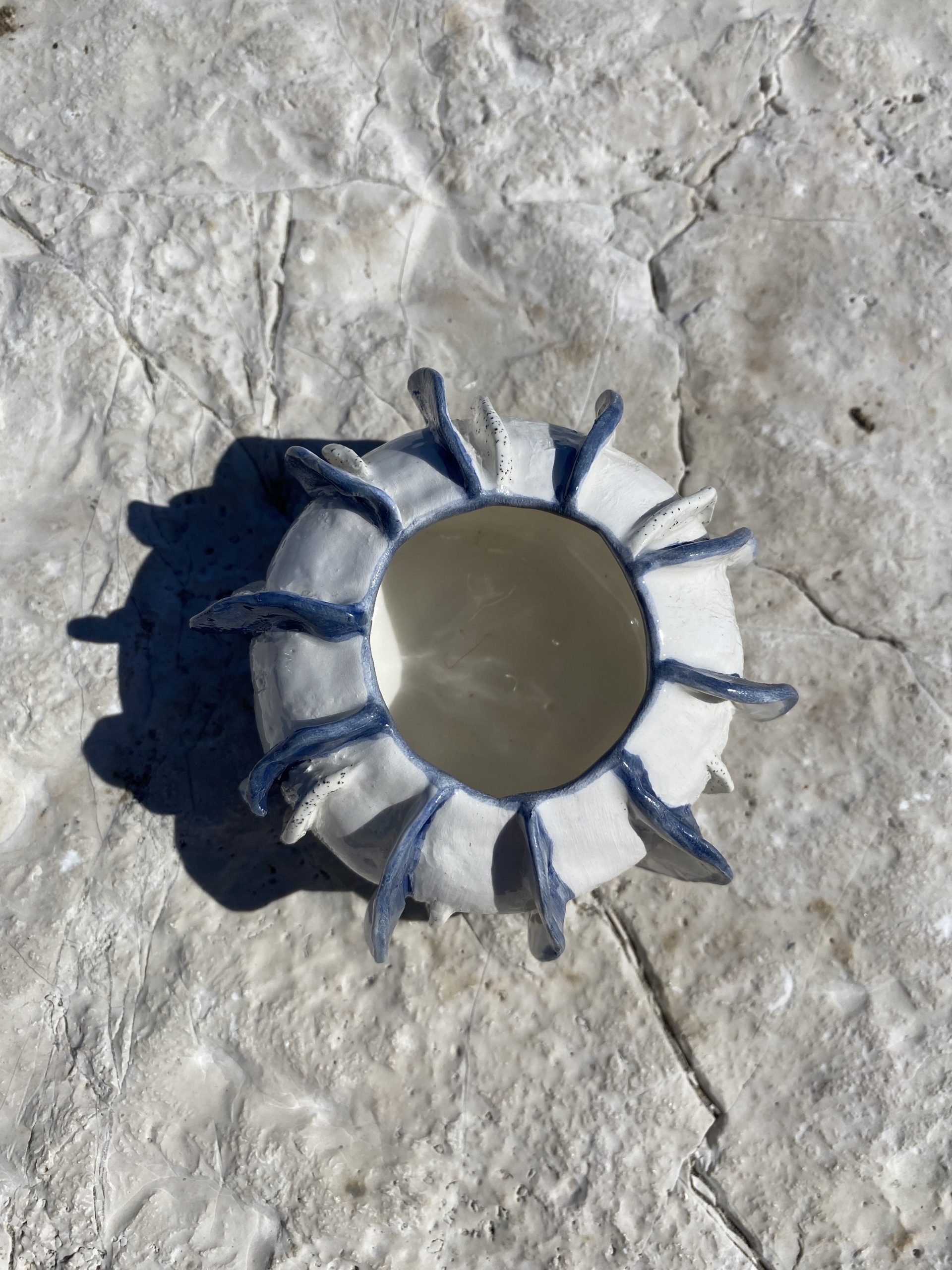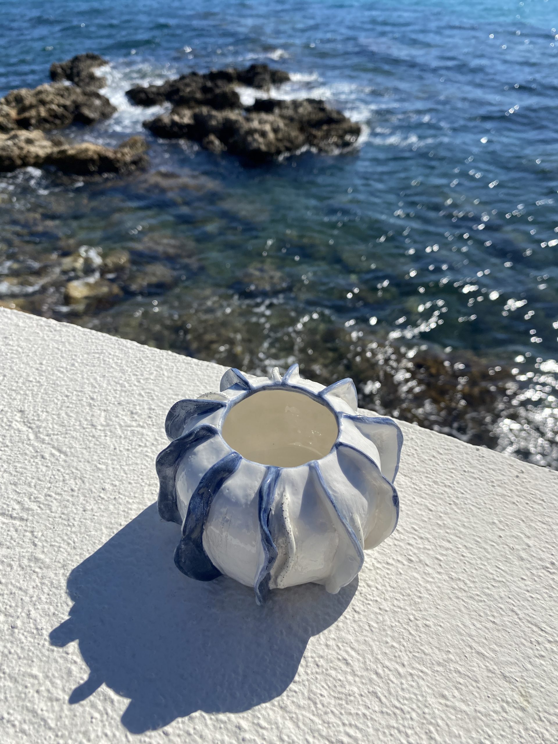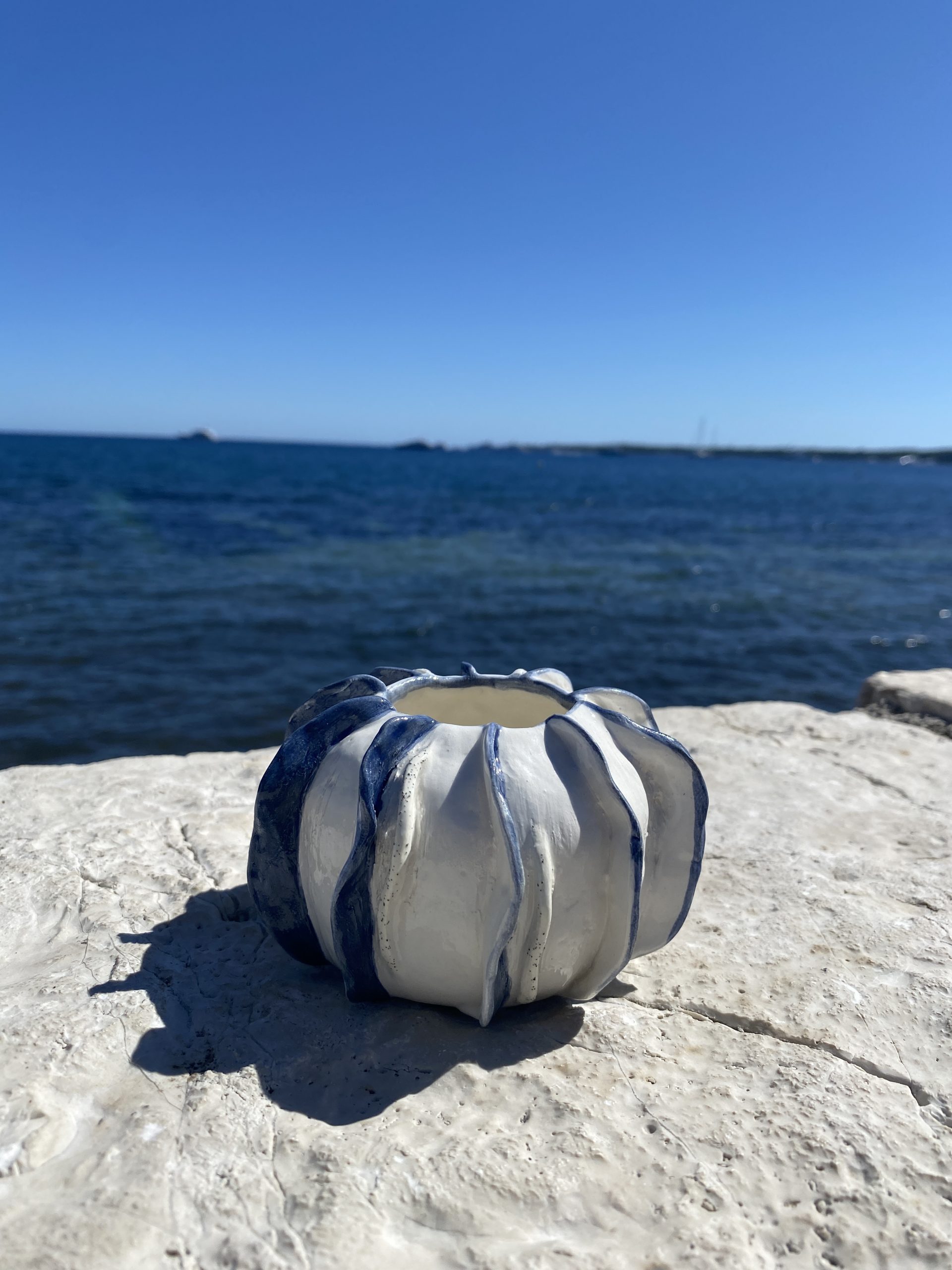 Restons dans l’univers marin avec cet oursin mixé de couleur blanche et bleue avec quelques touches d’effet sable.