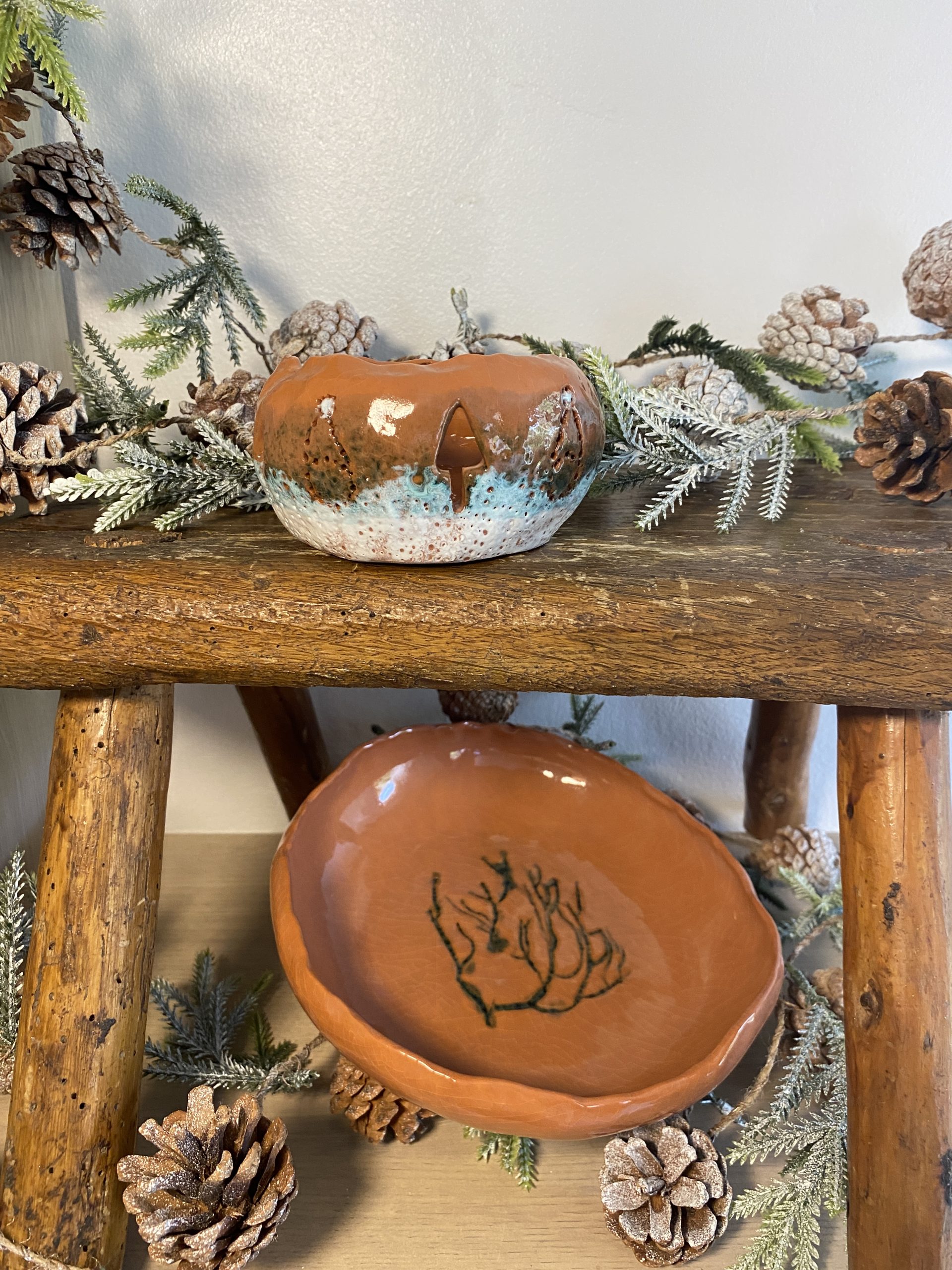 Faïence rouge perçée de motifs noël