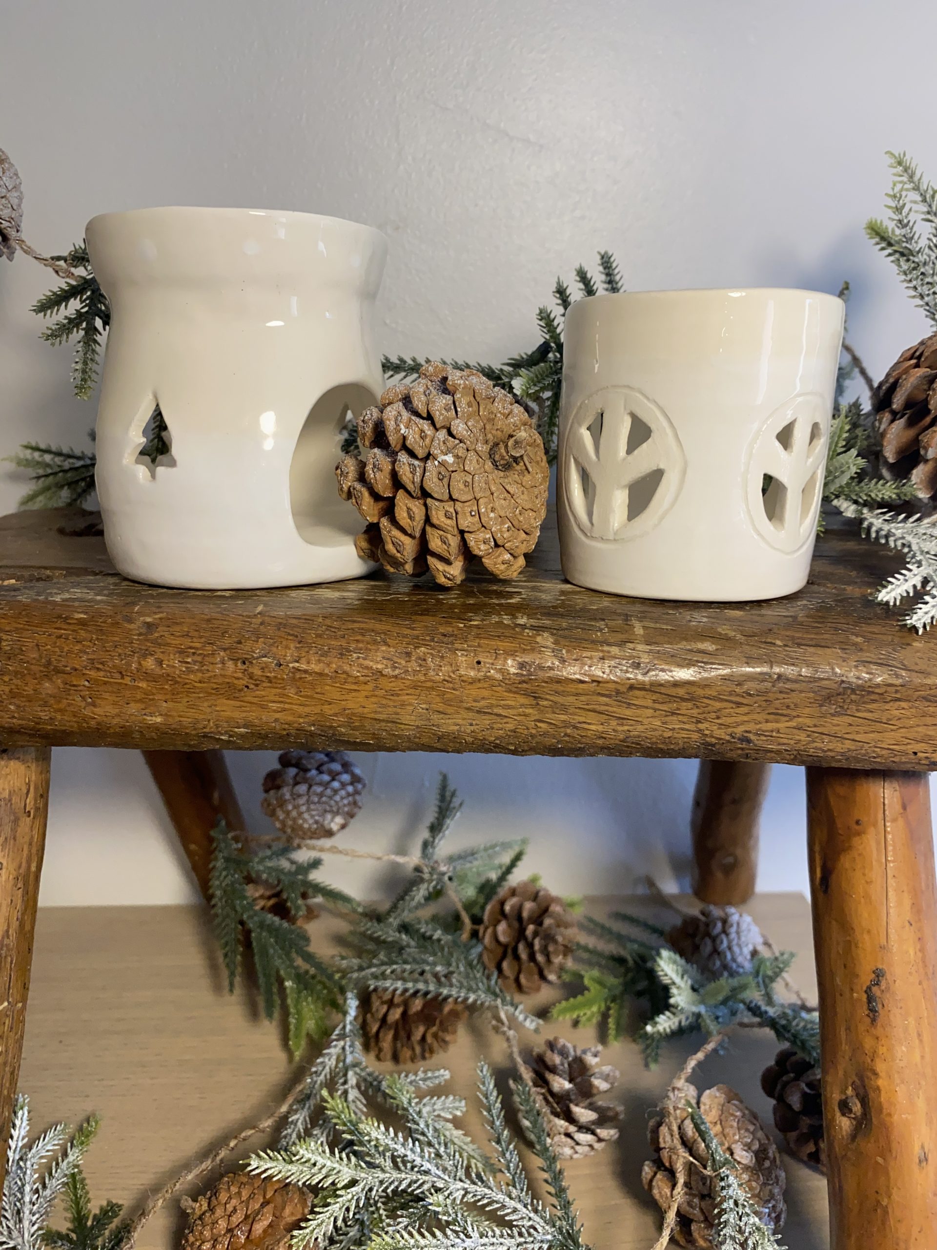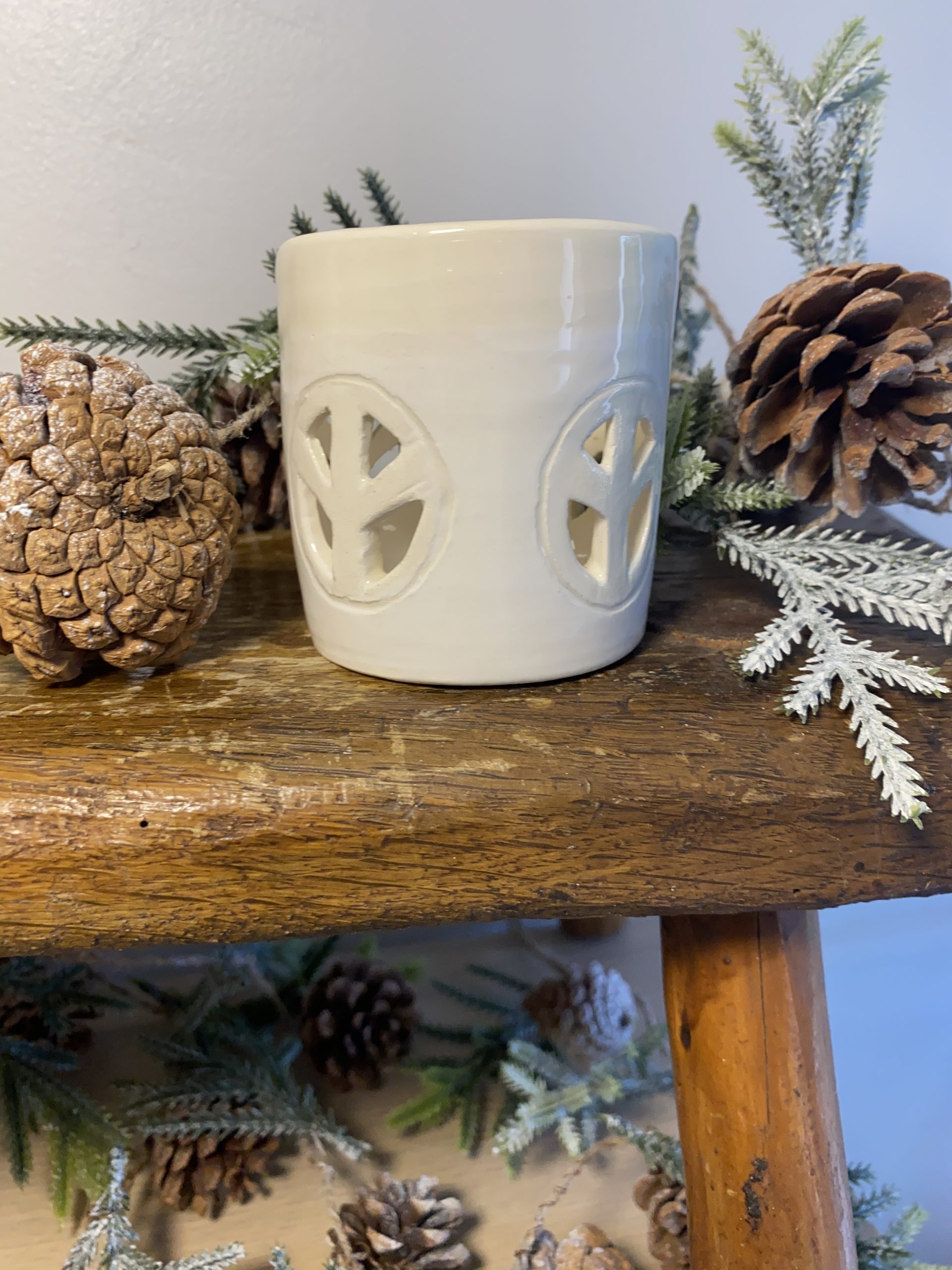 Photophore de Noël tourné en faïence avec un émail blanc pour illuminer votre intérieur.