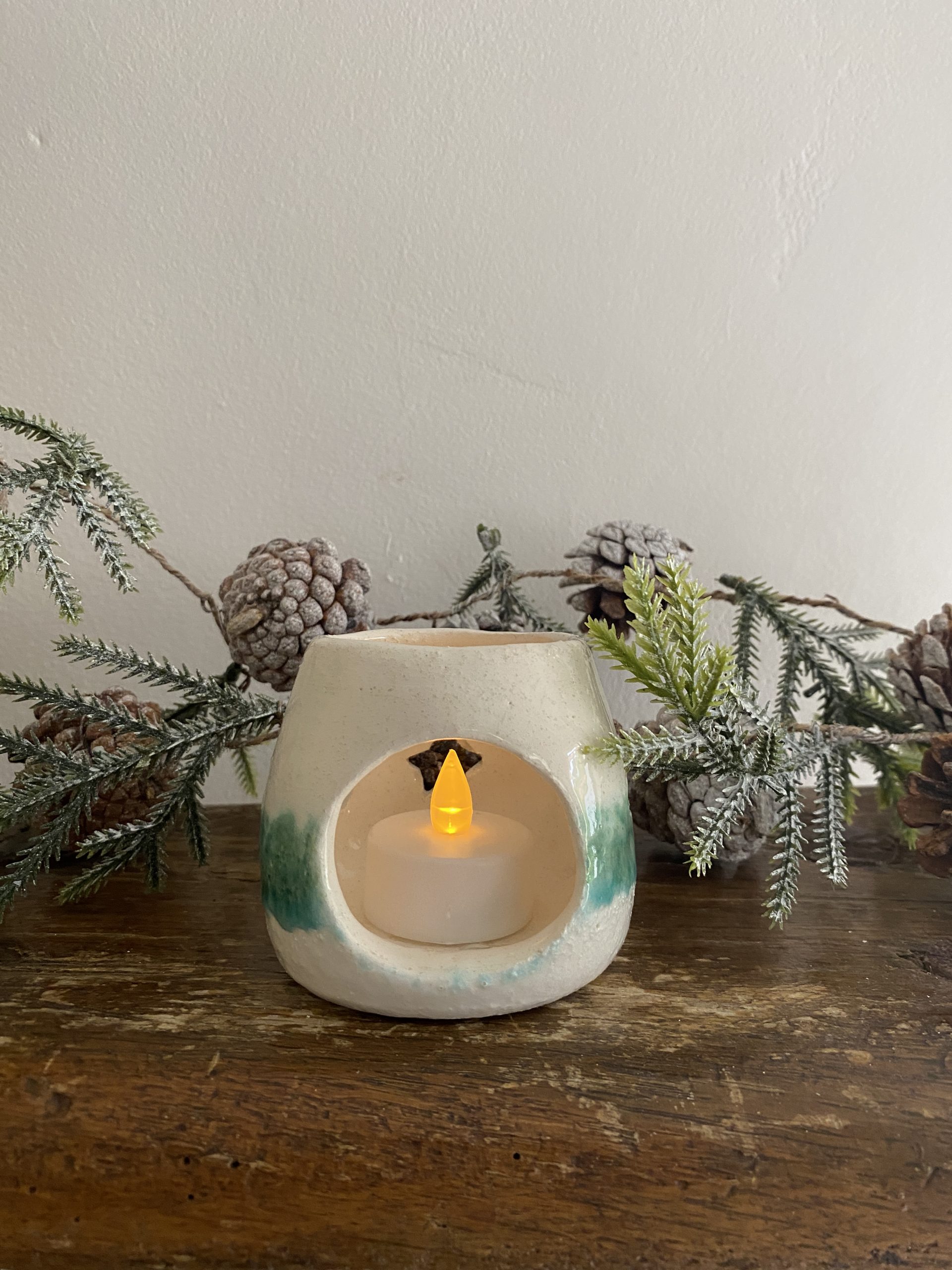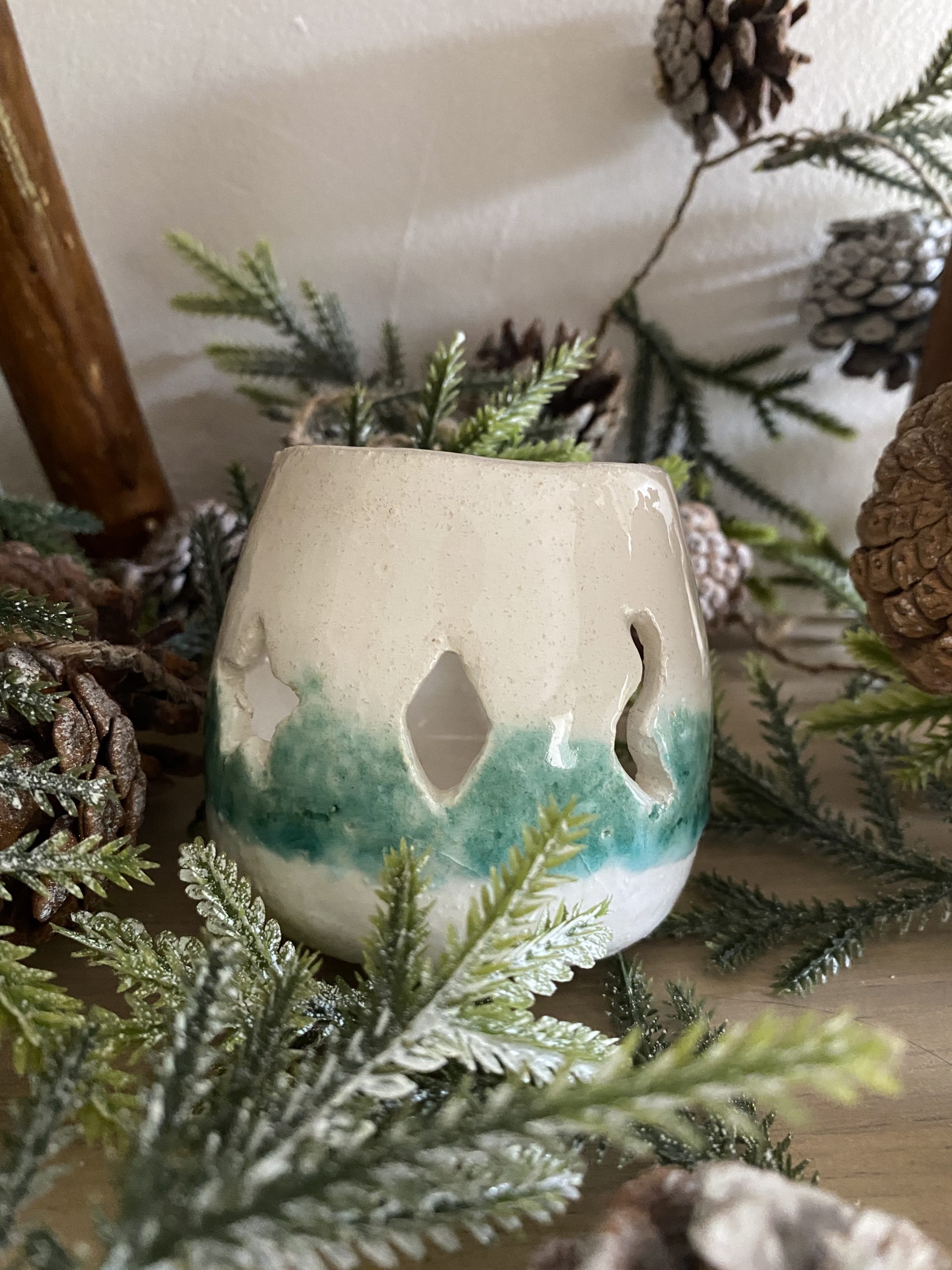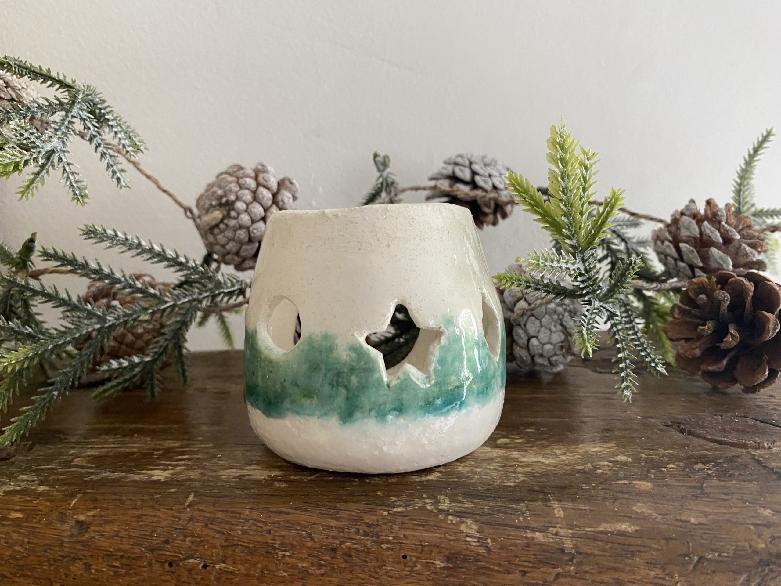 Tourner avec une terre beige méditerranéenne et ses petits grains de chamotte…ce photophore pourra reçevoir votre bougie.