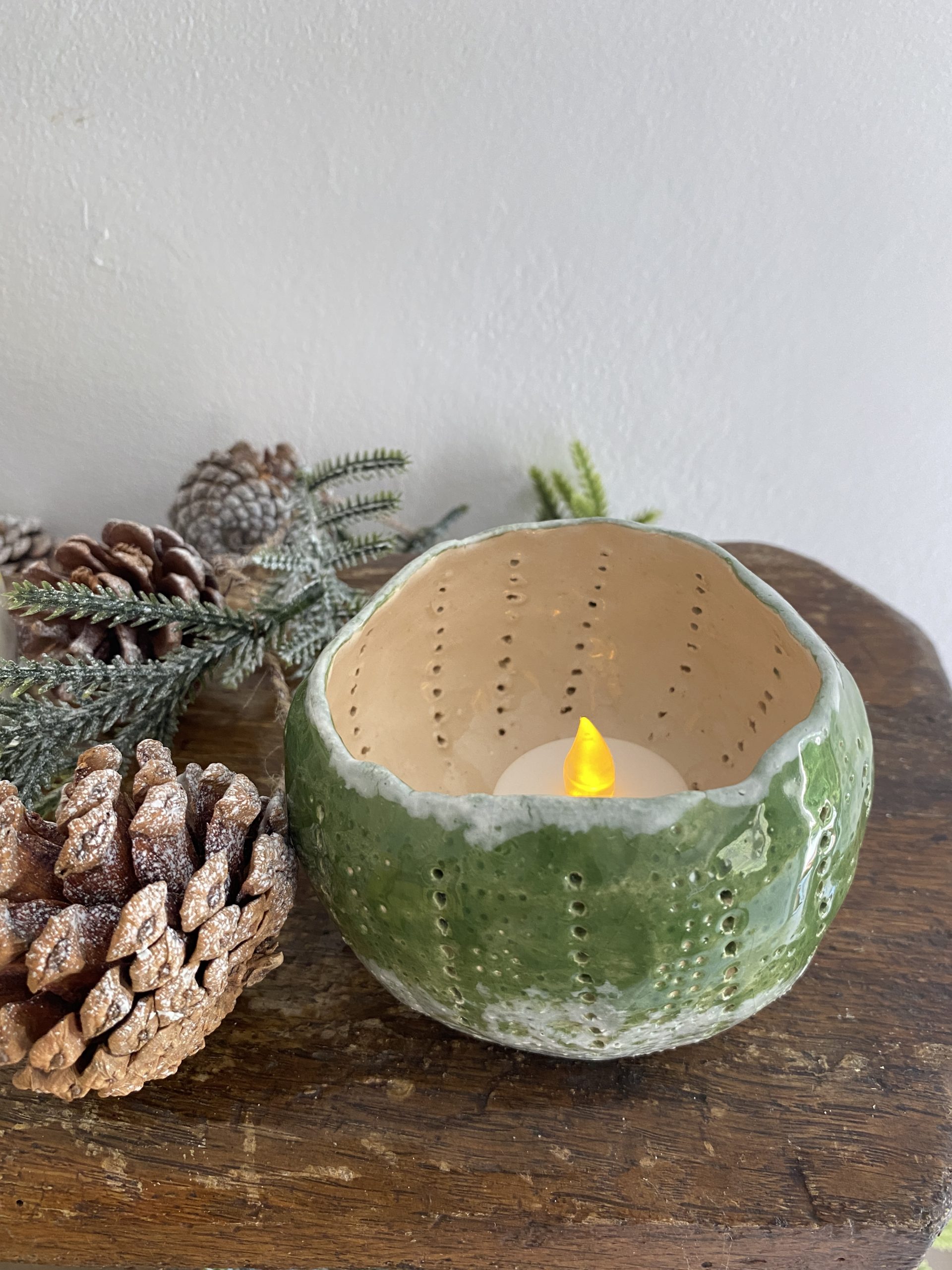 Tel un sapin de Noël ce photophore illuminera vos soirées festives.